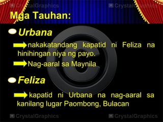 Ang kasaysayan ng dulang Pilipino ay isinilang sa lipunan ng mga katutubong Pilipino bago pa dumating ang mga dayuhang mananakop. Mga yugto ng buhay ng mga santo Kristo sa comedia de misteriong - Paete Laguna. MGA HALIMBAWA NG TAUHAN SA DULA.